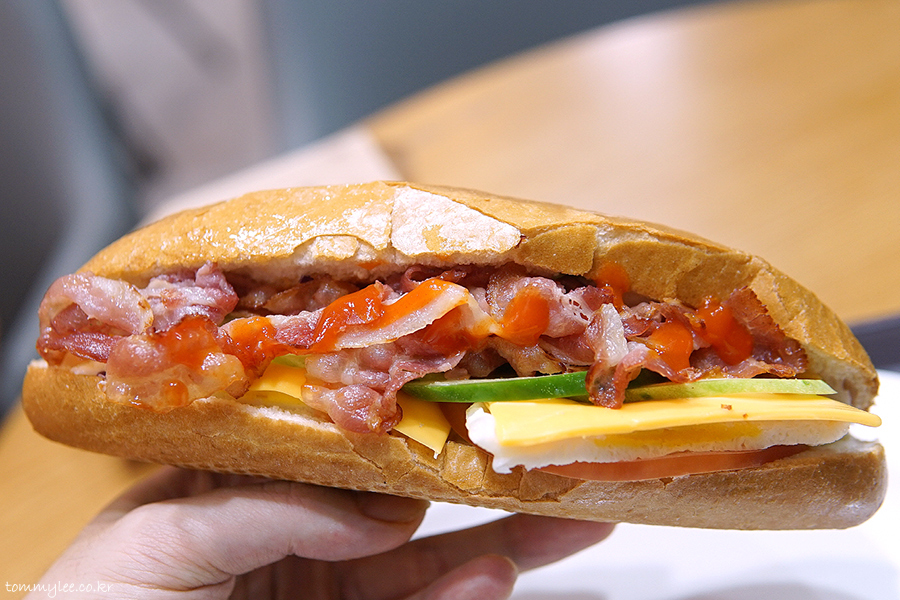 SMOSMOKED BACON EGG BAHNMI SANDWICH.. 훈제 베이컨 에그 반미 샌드위치.. 6,500원..