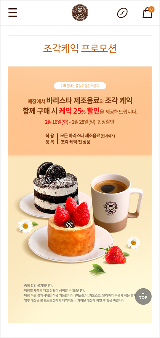 커피빈 케이크 페어링 25% 할인 이벤트 쏠쏠합니다.. 전에 멤버십 쿠폰으로 고작 1천원 할인쿠폰을 준 바 있는 커피빈이니까 25%면 정말 통 큰 할인이에요.. ㅋㅋㅋ.. 행사 2월 말 까니까 웬만하면 커피빈을 가게 될 듯..