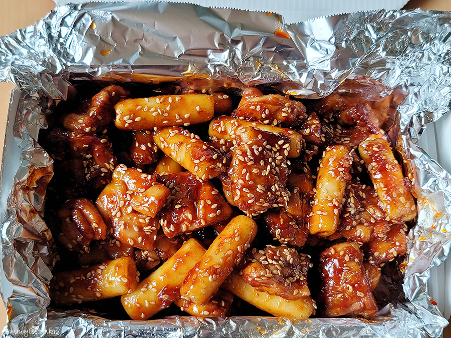 주문할 때 보니까 떡사리 추가가 필수(?)인 거 같더라고요.. 그래서 눈치껏(?) 떡사리 추가.. 근데 추가하길 잘한 거 같네요.. 숯불 치킨이라 그런지 치킨 양이 별로 안 많더라고요.. 떡사리 없었음 진짜 초라할 뻔.. ㅋㅋㅋ..