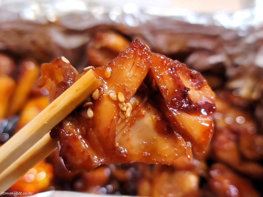 기름이 쪽 빠진 슬림한 닭다리살의 매력.. 굽네치킨보다 기름이 더 쪽 빠진 느낌이랄까나.. 다릿살이지만 담백합니다.. 맛은 있는데 많이 짜네요.. 뒷맛이 살짝 니끼한 것도 조금 걸리고..
