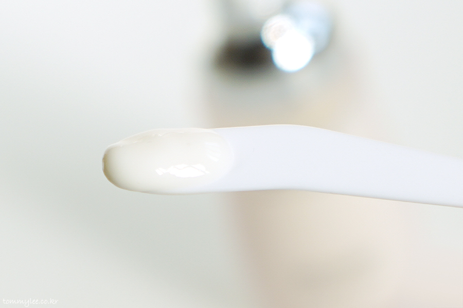 라벤더, 로즈마리, 오레가노, 타임 성분이 피부에 편안한 휴식을 제공한다고.. 악어오일 에센스를 짜내면 요런 느낌이 나옵니다.. 스패츌러로 들고 있으면 주르르 흘러내릴 정도로 묽네요..