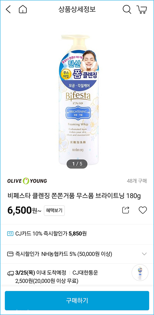 이 제품의 원래 이름은 포밍휩 브라이트닝이지만 클렌징 쫀쫀거품 무스폼 브라이트닝이란 이름으로 판매 중입니다.. 물론 같은 제품.. 드럭스토어에서 현재 50%할인중이라 부담 없이 구입할 수 있답니다.. 올리브영 비페스타 클렌징 쫀쫀거품 무스폼 브라이트닝 구입 링크 → 요기..