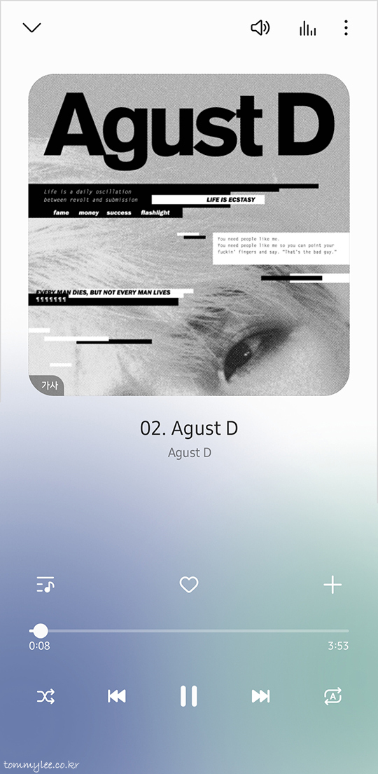 다음은 어거스트디.. 듣다가 뭔가 허전해서 보니 볼륨 조절이 안 되는.. 이건 꽤 불편할듯한.. ㅡㅡ;;..