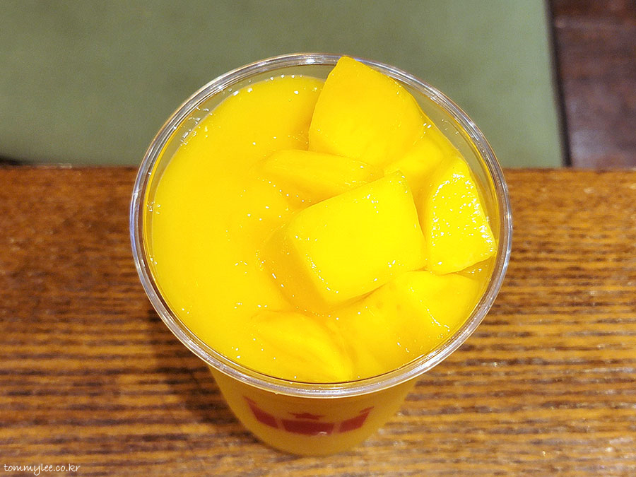 기존 애플망고 스무디와 800원 차이인데.. 망고가 이렇게 많이 올려지니까 하나가득 애플망고가 확실히 이득입니다..
