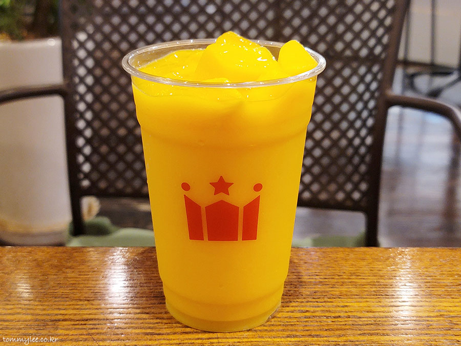 기존 애플망고 스무디의 업그레이드 버젼으로 2021 여름 시즌메뉴.. 애플망고 1개를 통째로 넣은 본격 망고 스무디라는 설명..