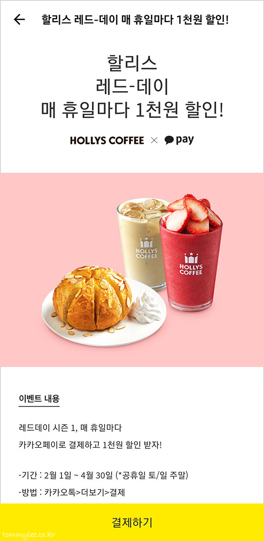 카카오페이 할리스 레드데이 1천원 할인 혜택의 마지막이라서 할리스커피를 찾았습니다.. 2월부터 진행한 행사인데 벌써(?) 종료라니 아쉽네요..