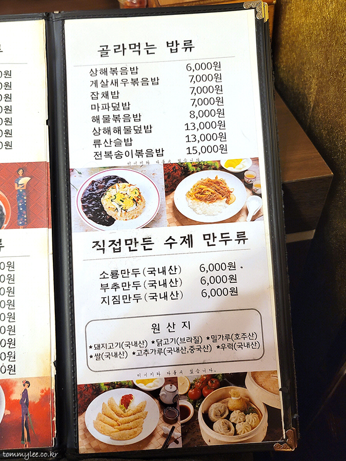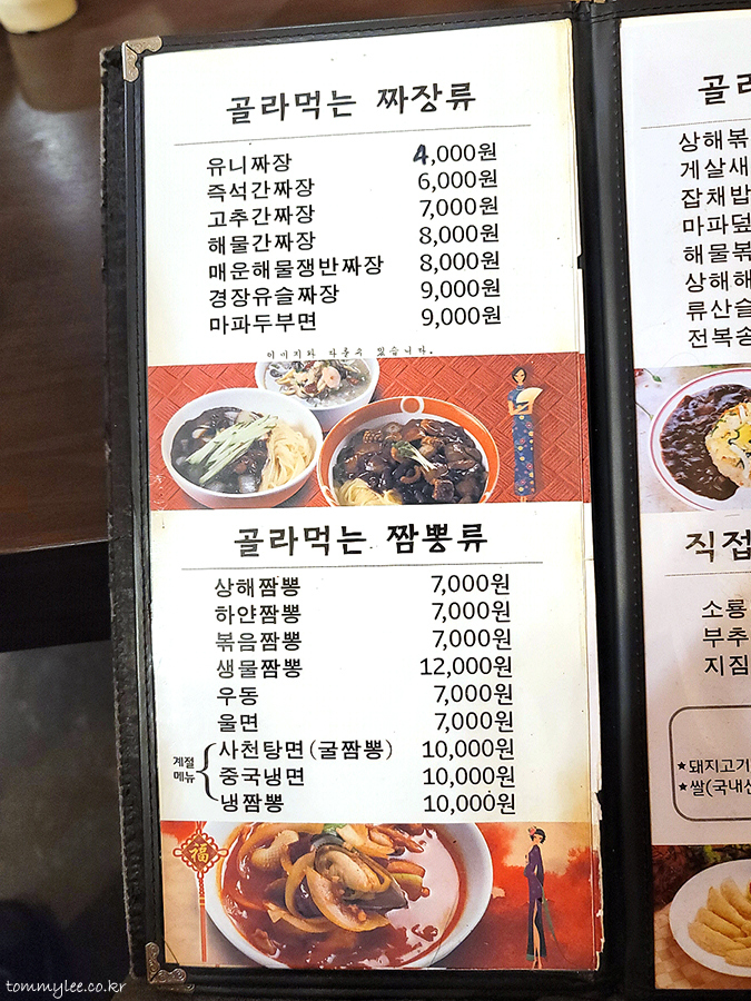 상하이문 메뉴판.. 골라먹는 짜장류 7종, 골라먹는 짬뽕류 9종.. 짜장면 4천원부터~..