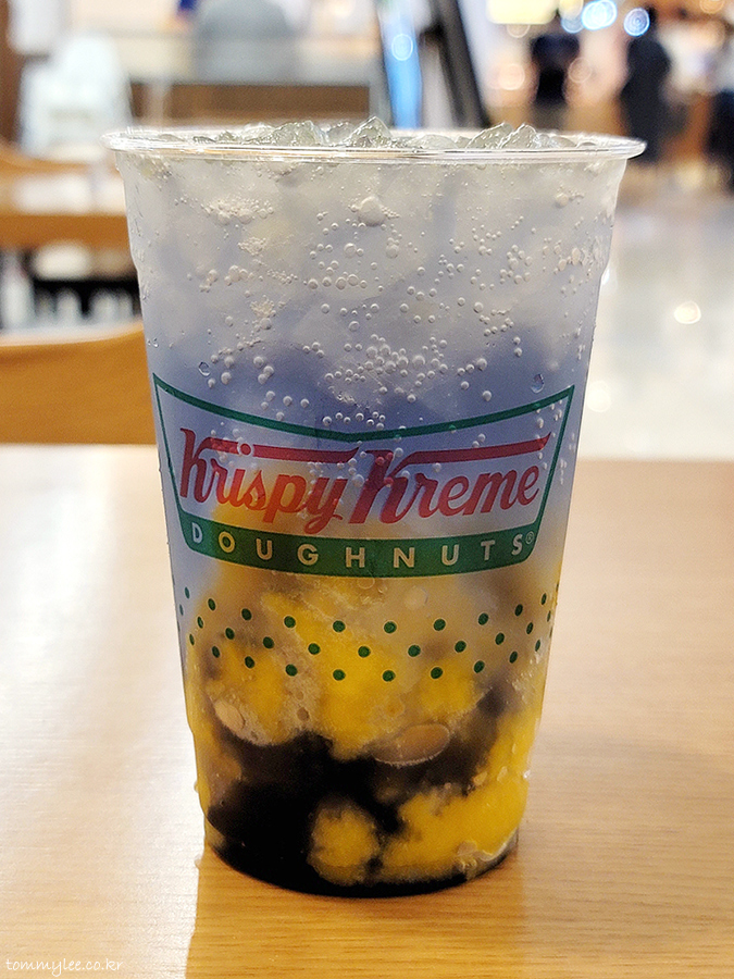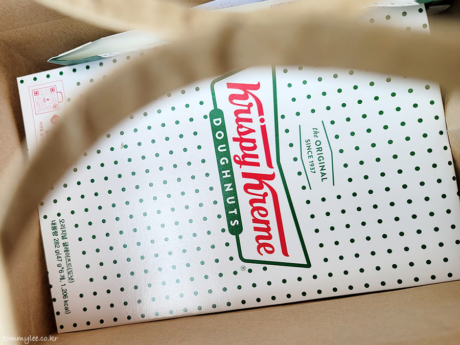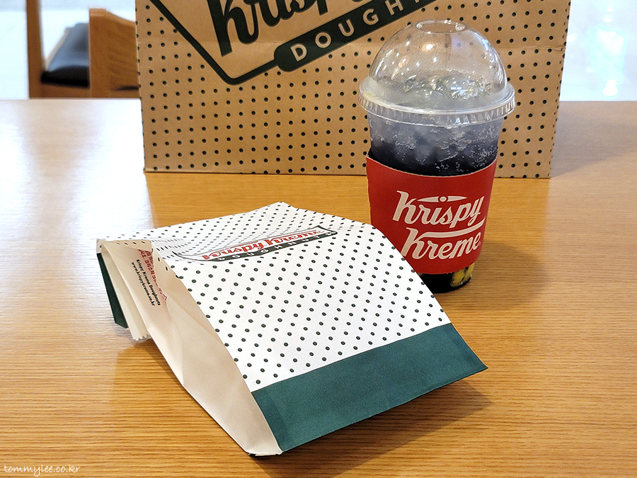 오리지널 글레이즈드 도넛이랑 소다크러쉬 콤보 구입.. 먹고 갈꺼라고 했는데 굳이 포장을 해주시고..