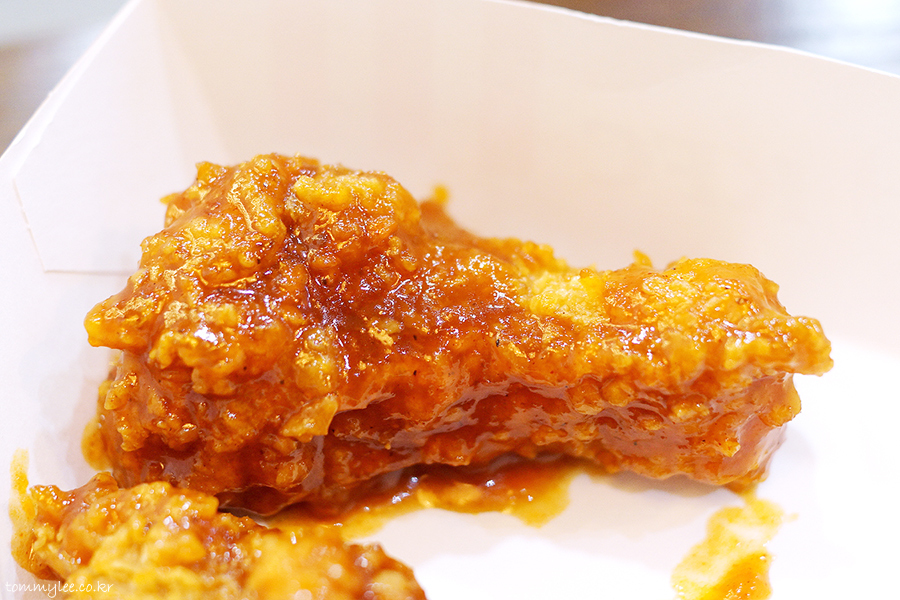 블랙라벨 치킨이 일반 치킨보다 양이 많긴 하네요.. 볼륨이 있는 데다 양념까지 묻혀 놓으니 엄청 무거움..