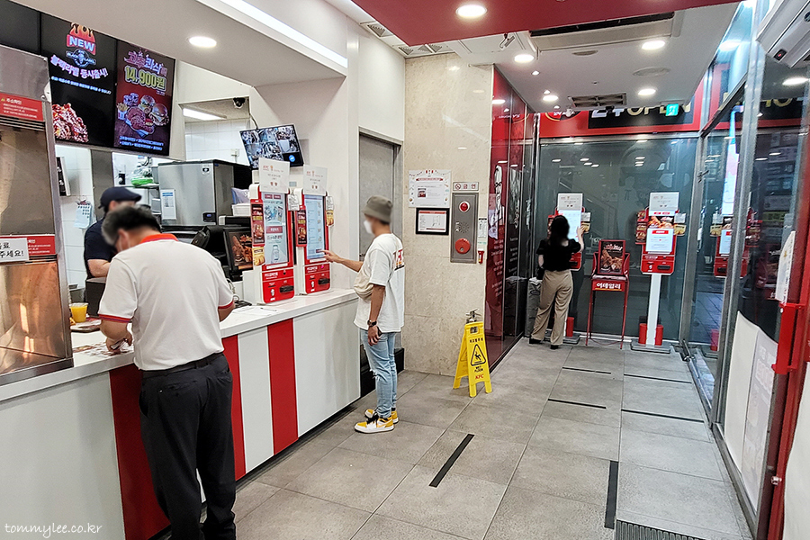 홍대 KFC 안쪽으로 들어서면 이런 느낌.. 위치가 워낙에 좋다보니 늦은 시간에도 손님이 많은 매장입니다..