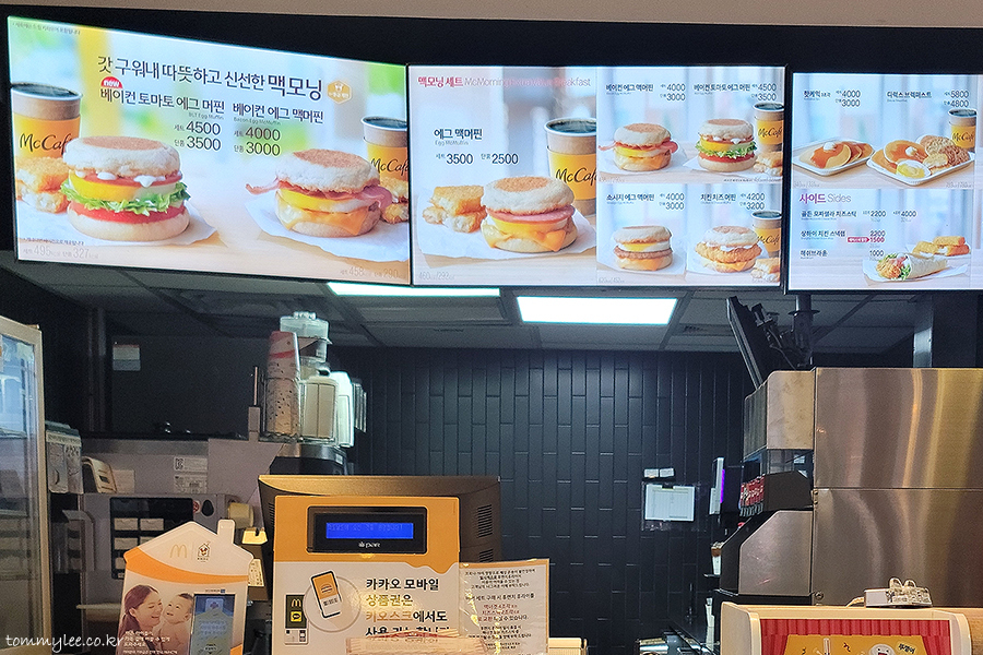 맥모닝 시간은 04:00~10:30이고 이 모닝시간에는 햄버거 등의 맥도날드 주력 메뉴는 판매하지 않습니다.. 이 시간에 햄버거 드시고 싶으시면 인근 롯데리아에 가시면 됩니다.. 거긴 모닝메뉴 없거든요.. 암튼 맥모닝 메뉴보드 찍어 봤으니 메뉴 및 가격 확인하시면 될 것 같네요.. 잘 보이시죠??.. 1억만 화소의 무서운 힘.. ㅋㅋㅋ..