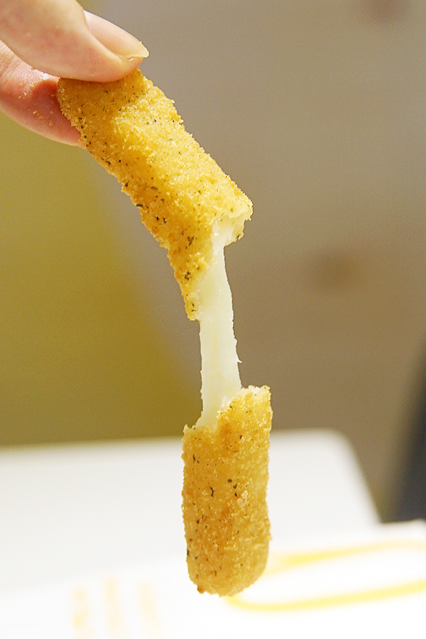 GOLDEN MOZZARELLA CHEESE STICKS.. 골든 모짜렐라 치즈 스틱.. 2조각 2,200원..