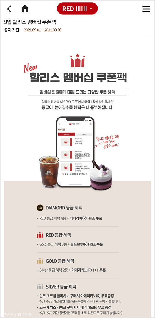 아메리카노는 역시 쿠폰.. 9월에도 쿠폰 덕분에 할리스에서 아메리카노를 마시게 되는군요.. 할리스 커피는 이 빨강 머그로 마셔 줘야 제 맛..