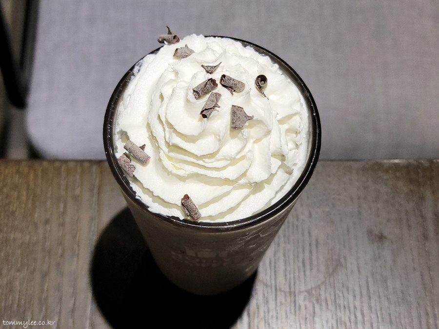 민트초코에서 민트초코칩 할리치노로 리뉴얼하면서 민트초코 트렌드에 완전히 합류하는 기분이었네요.. 휘핑크림 위에 초콜릿을 깎아 토핑을 올리는 성의까지 보여주고 굿굿..