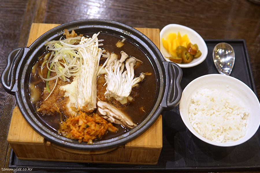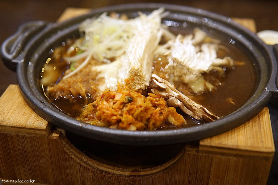 표고버섯, 팽이버섯, 느타리버섯 3종이 곁들여지는건 알겠는데.. 카츠나베가 아닌 키노코나베인듯한 느낌??..