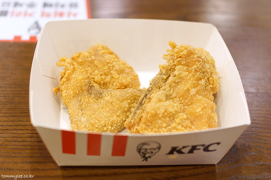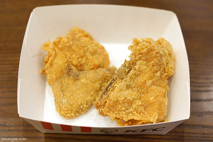 KFC 조각치킨은 원하는 부위는 선택할 수가 없기 때문에 진짜 복불복입니다.. 싸이, 립, 킬, 드럼스틱, 윙 중에서 뭐가 나오려나 알 수가 없는.. 저는 윙이나 킬을 좋아라 한답니다..