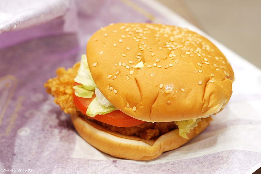 위에서 바라보면 이런 느낌.. 치킨패티가 삐져 나온 느낌 너무 훈훈하네요..
