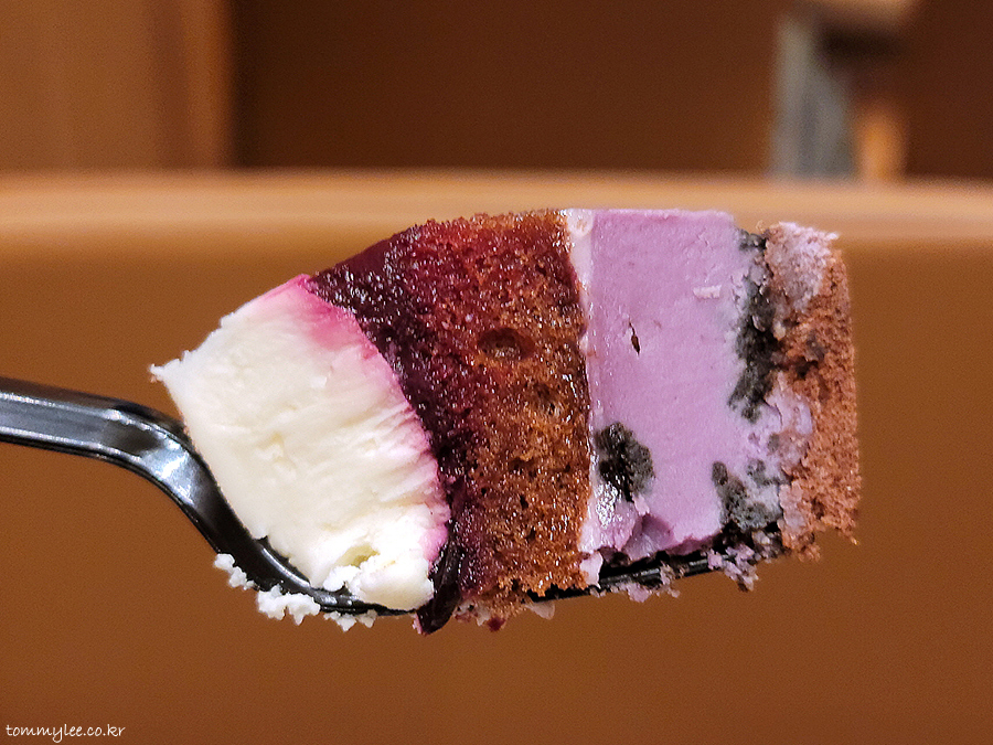 트리플베리 케이크 하면 전 방탄과 얽힌(?) 에피소드가 생각이 나는데요.. 작년에 방탄소년단이 그래미 어워드 노미네이트 되었다며 기쁨의 자축 라이브를 켰는데.. 그때 브이라이브에서 투썸 트리플베리 치즈무스가 나왔더랬죠.. 보라색 케이크 너무 예쁘다고 RM이 극찬.. 근데 지민이가 샴페인을 따다가 케이크 위에 제대로 쏟아서 웃지 못할 대참사가 났던 걸로.. 그게 너무 웃겨서 아직도 기억에 남아요.. ㅋㅋㅋ..