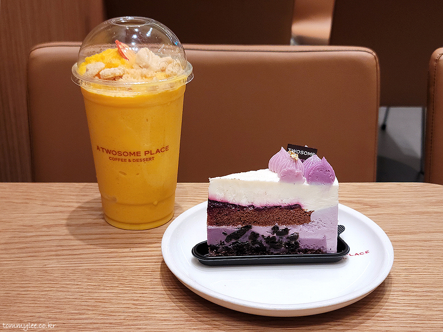 예쁜 보랏빛 치즈케이크 트리플 베리 치즈 무스 케이크와 딜라이트 펌킨 프라페로 달 다르한 시간을 보냈다는 스토리가 되겠네요.. 크리스마스엔 투썸 케이크와 함께 해보시라는..