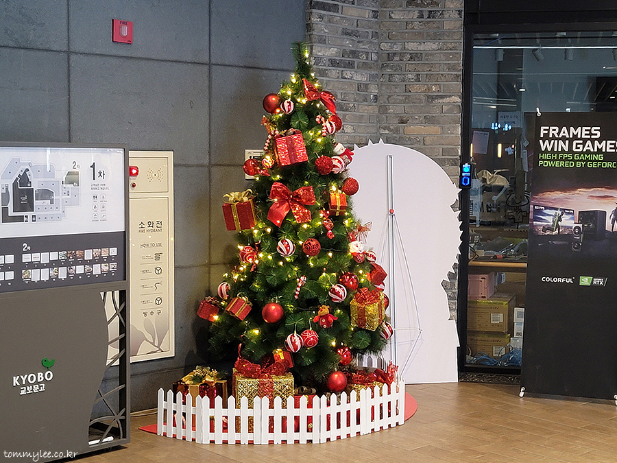 폴바셋에는 크리스마스트리가 없어서 교보문고 입구의 딜라이트 스퀘어 크리스마스 트리를 찰칵..