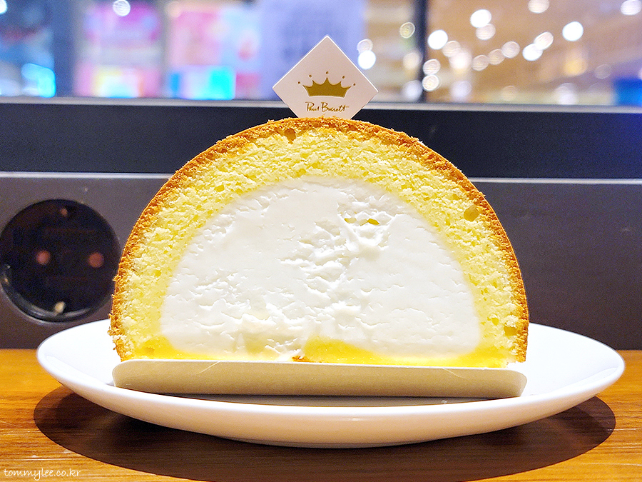 뒤에서 바라보면 이런 느낌.. 몽슈슈 도지마롤풍의 생크림 잔뜩 롤케익이랍니다.. 녹차맛도 있는데 녹차보단 오리지널이 더 맛있음..