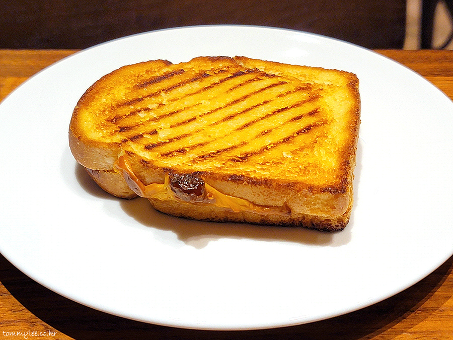 노랗게 지져낸 프렌치토스트 사이에 베이컨과 트리플치즈, 스크램블에그가 샌드 된 프렌치토스트형 핫 샌드위치가 되겠다는..