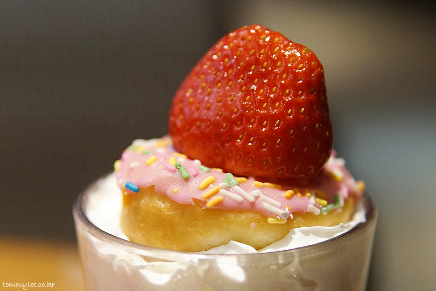 도넛과 딸기 장식도 좋은데 음료도 기존 딸기 할리치노와는 다른 밀크셰이크풍의 할리치노입니다.. 어디서 마셔본 듯한 평범하면서도 익숙한 맛.. 하지만 맛있는 딸기 밀크셰이크 맛..