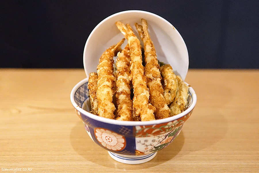 이렇게 뚜껑 받쳐서 나오면 새우가 세울 수 있을 만큼 크다는 거니까 고급 텐동인 것입니다..