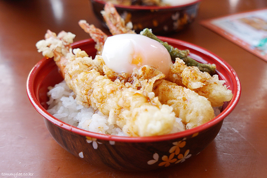 새우텐동은 새우4, 가지, 단호박, 꽈리고추, 김, 온천계란으로 구성된다는 설명이고요..