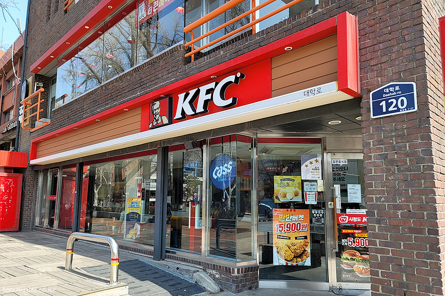 지인분들과 점심을 해결하기 위해서 들른 KFC 대학로점.. 대학로에선 역시 켄터키 후라이드 치킨.. KFC앱 할인쿠폰을 소진하기 위한 방문이었네요..