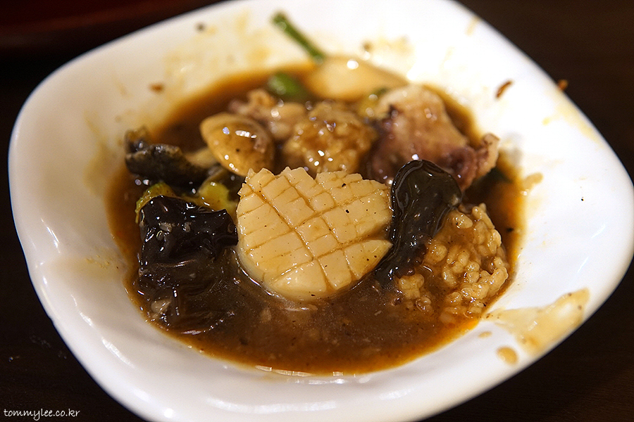 새우, 가리비, 해삼, 쭈꾸미, 오징어가 들어간 누룽지탕.. 버섯도 4종이 들어가서 매우 버라이어티한 맛을 즐길 수 있는 게 여기 누룽지탕의 특징..