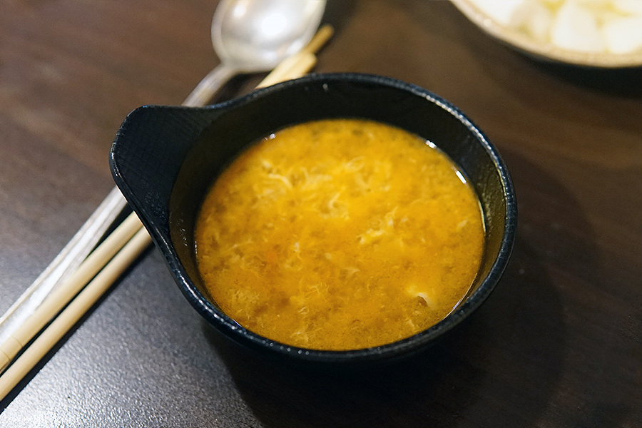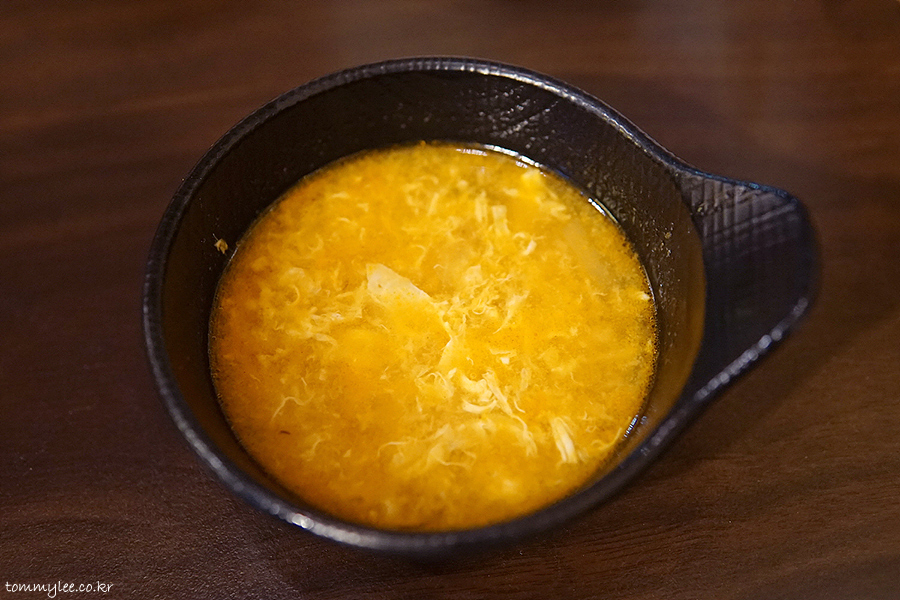 밥 메뉴에는 국물이 필수.. 계란국이 함께 제공된 모습..