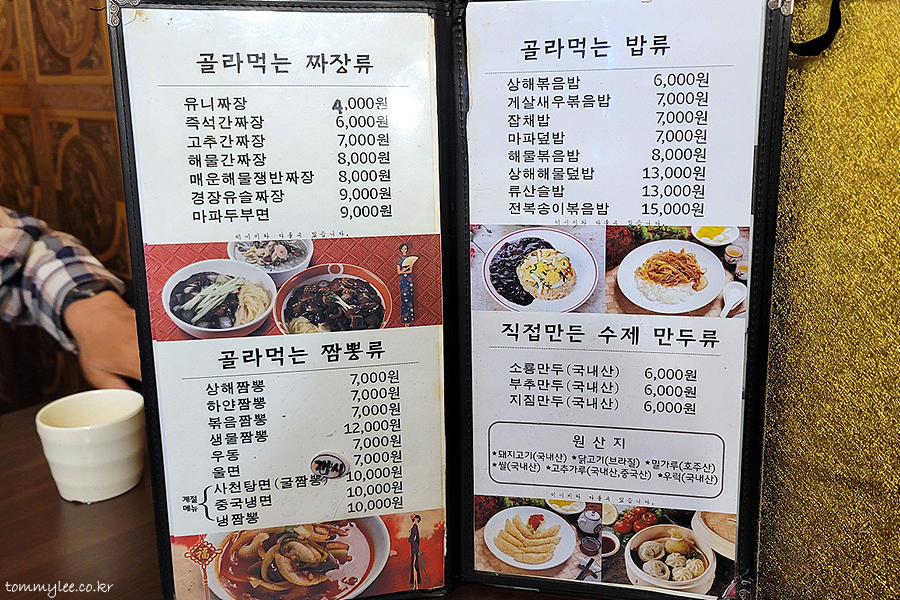 유니짜장 4천원, 상해짬뽕 7천원, 상해볶음밥 6천원, 소룡만두 6천원으로 매우 착한 가격..