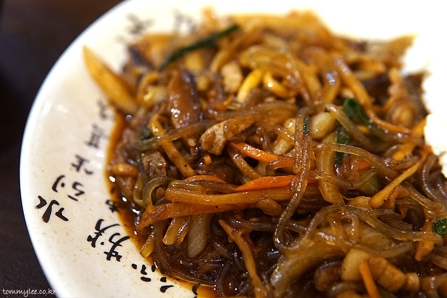 얇게 채 썬 야채와 당면이 볶아진 클래식한 잡채밥..