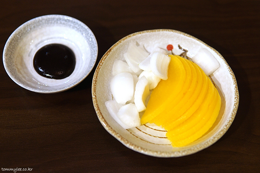 단무지와 양파 춘장.. 김치가 원래는 같이 나오는데 이번엔 없었습니다..