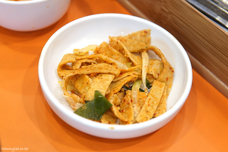 반찬 3종 세트.. 진미채볶음, 배추김치, 고추장아찌.. 콩국수를 먹으면 김치만 달랑 나오고 이런 반찬다운 반찬이 전혀 안 나오지만 찌개나 볶음밥 주문하면 나온답니다.. 찬 중 진미채, 어묵볶음은 고정이고 김치와 장아찌는 계절에 따라 바뀌는 듯.. 김치의 경우 이번에는 쉰 김치가 나와서 특이했네요..