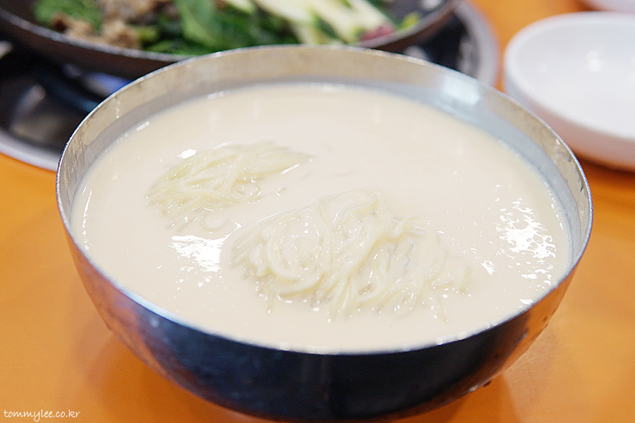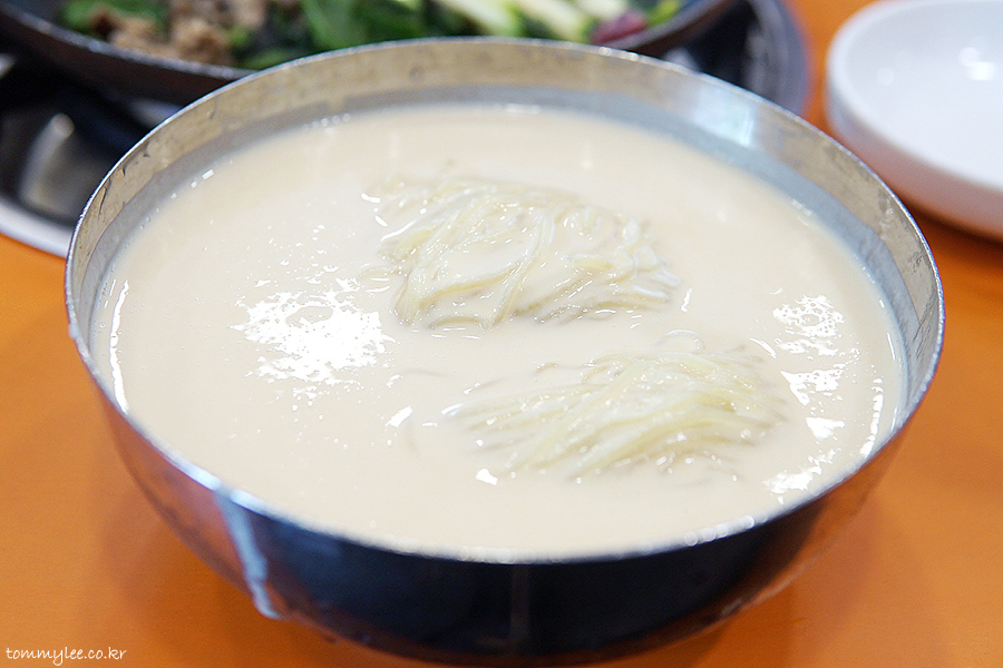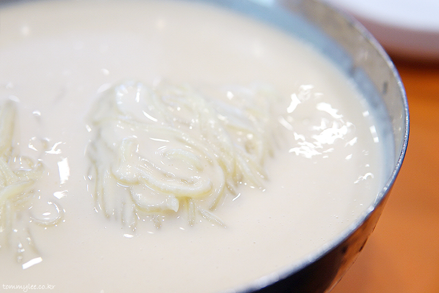 콩국과 국수 외에는 아무것도 들어가 있지 않은 이 심플한 모습.. 오이채나 토마토, 계란 등등의 장식은 진주회관에는 필요가 없습니다.. 그만큼 맛에 자신이 있다는 것이죠..