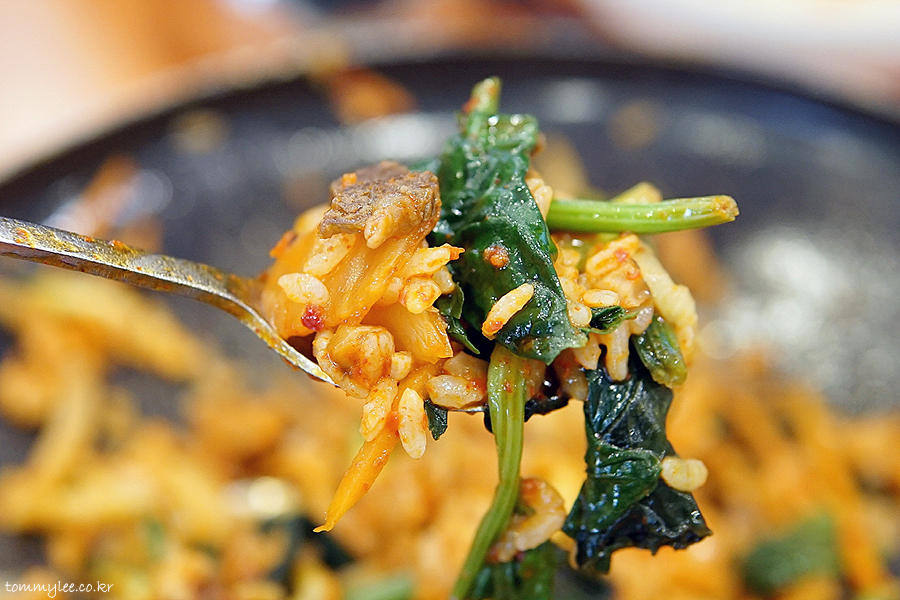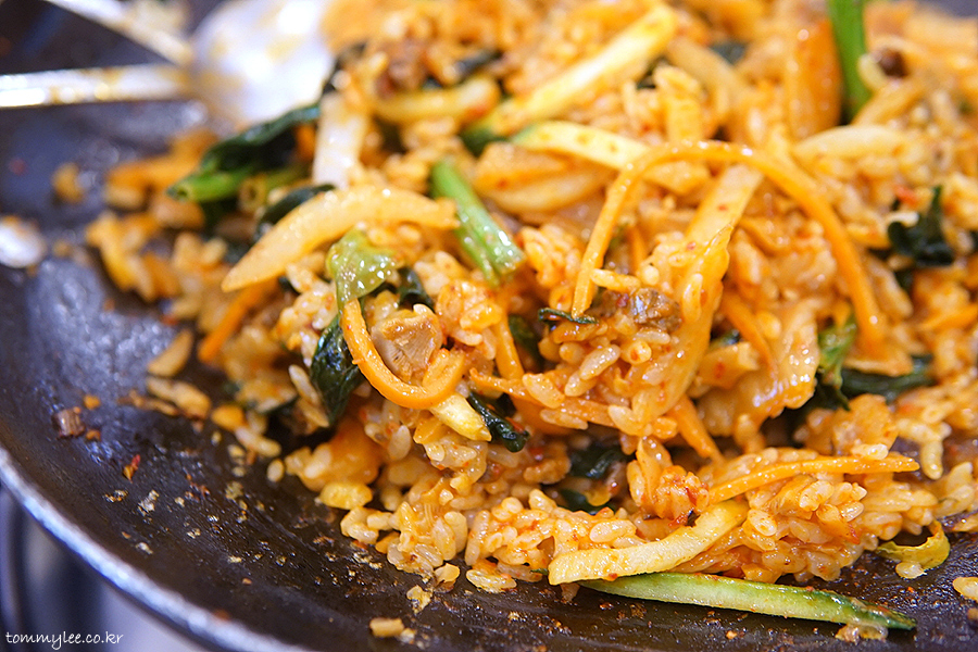 따로 나오는 공기밥을 투하해 볶아볶아 하는 즉석 김치볶음밥.. 직접 볶아 먹는 건 아니고 직원분께서 다 알아서 볶아주시니 나중에 결과물을 먹기만 하면 됩니다..