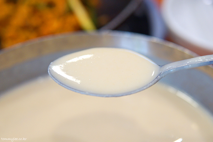 얼음이 한 톨도 들어가 있지 않지만 완전 시원.. 언제 먹어도 변함없는 이 맛.. 여름엔 역시 시원한 콩국수..