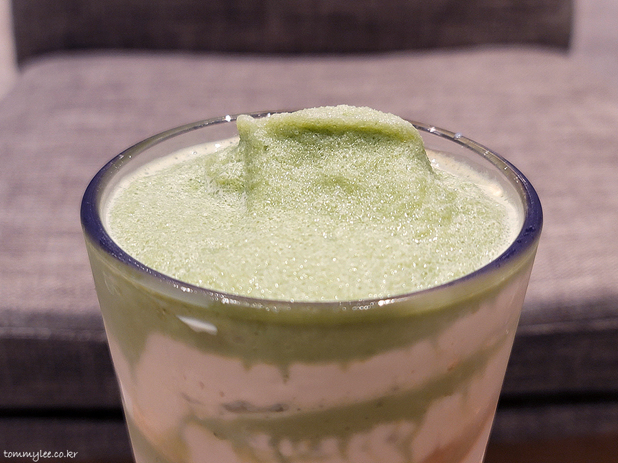 잘 어울리지 않을 것 같은 말차와 커피를 어떻게 합쳐냈을지 궁금했던 음료.. 말차 프라푸치노에 콜드브루 모카소스 조합이라고 합니다..