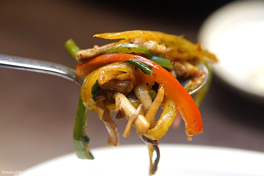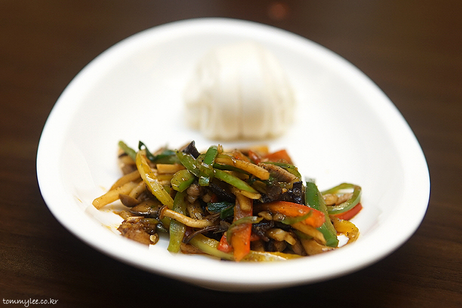 상하이문 고추잡채 그러고 보니 처음이네요.. 고운 때깔의 홍피망과 청피망이 글로시하게 마무리되어 있네요..