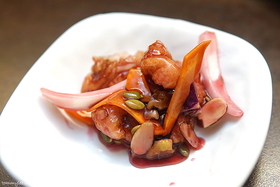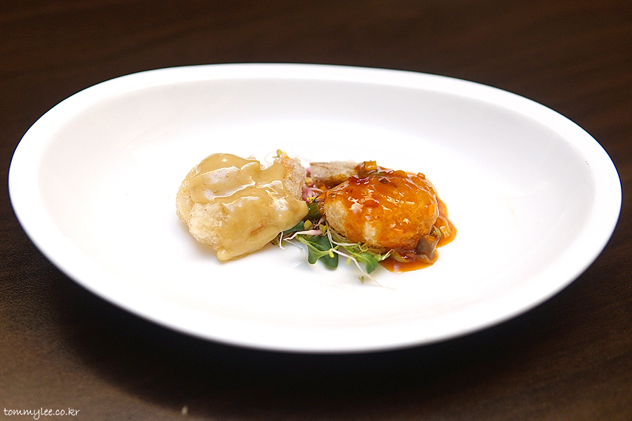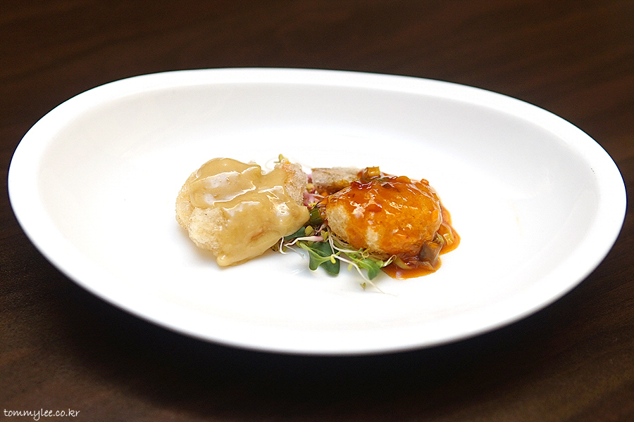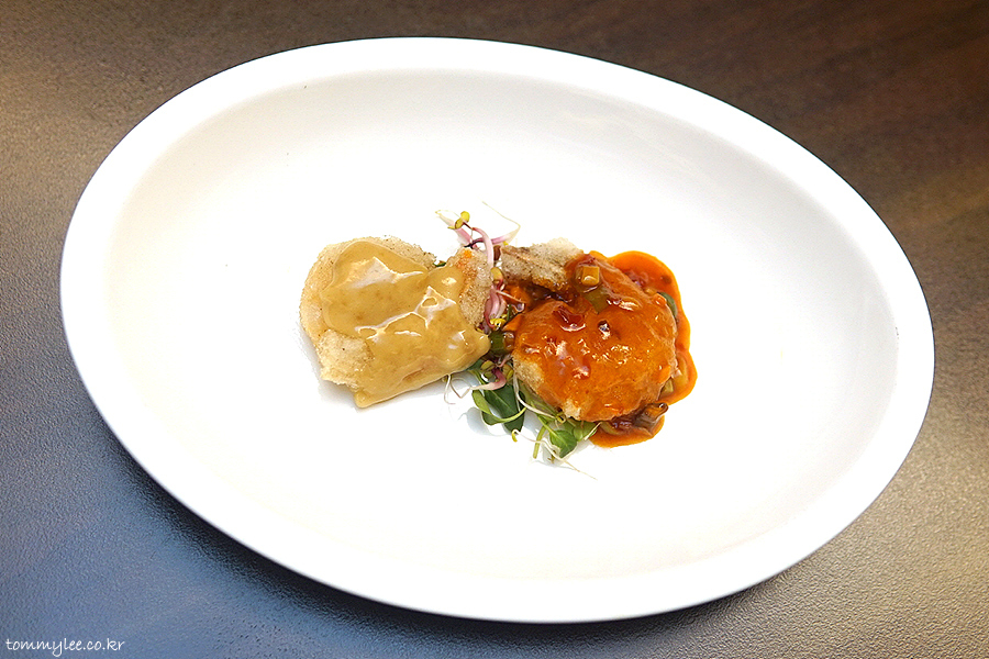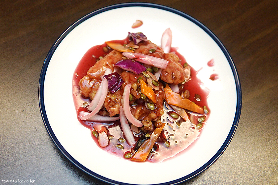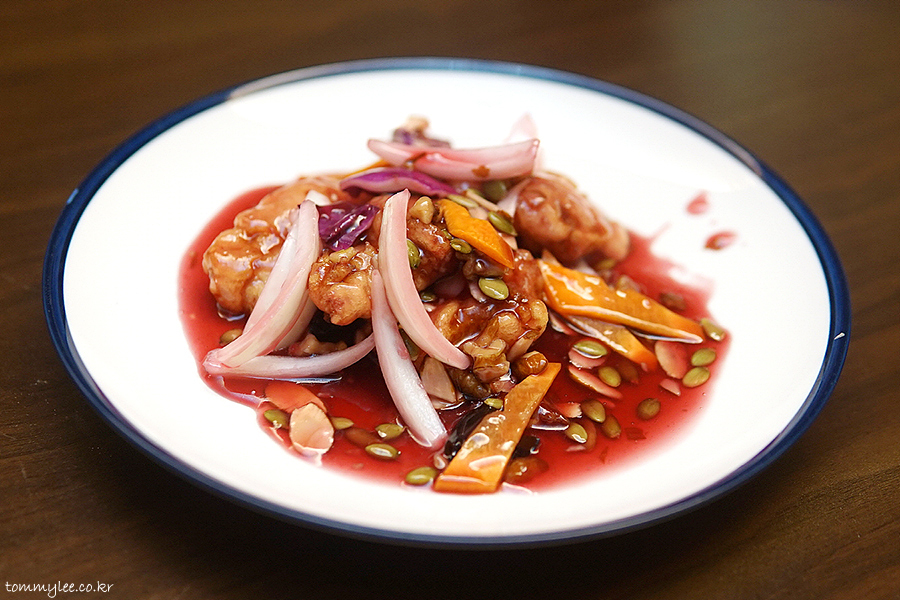 원래 꿔바로우는 이런 색이 아니었는데 오늘은 평소보다 더 예쁘게 나와서 기분이 좋은.. 상하이문은 사실 같은 메뉴를 주문하면 다른 중식당들처럼 매번 복사해서 붙여넣기한 듯한 똑같은 복붙 메뉴가 나오는 것이 아니라 어렌지를 꽤 빈번하게 하는 편입니다.. 그래서 지겹지가 않고 새로워요.. 이런 부분을 저는 높게 평가합니다..