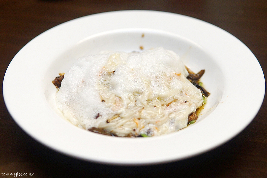 상하이문에서 처음 맛보는 게살샥스핀입니다.. 이건 포션 하기가 조금 어려우셨던지 덜어 먹게 개인접시랑 같이 주셨어요..