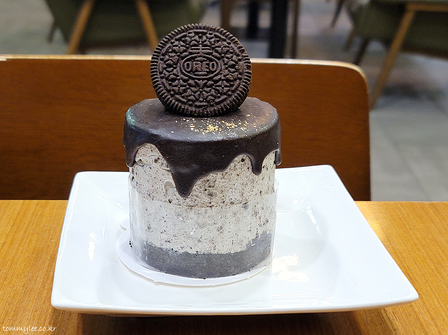 오레오 케이크가 땀을 많이 흘리고 뭔가 단단해 보이는 느낌이었는데.. 맛보기 실패.. 꽁꽁 얼어서 포크가 안 들어감.. ㅠ.ㅠ..