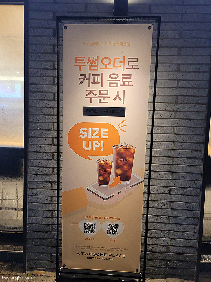 투썸 가재울뉴타운점 투썸오더 이벤트.. 투썸오더로 커피 음료 주문 시 무료 사이즈업.. 하지만 쿠폰을 쓰는 저에겐 해당사항 없음.. ㅡㅡ;;..
