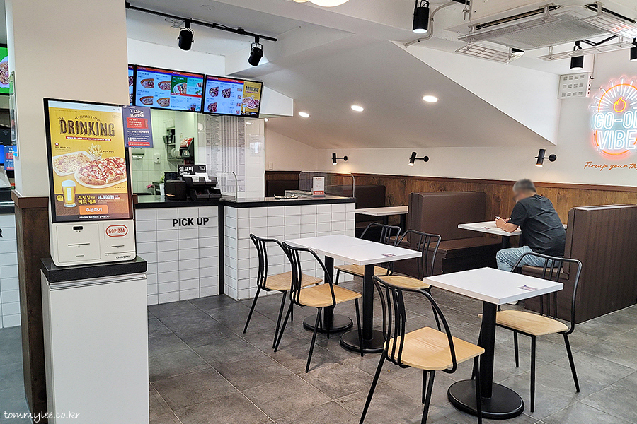 T데이 쿠폰은 키오스크 사용이 안되고 캐셔에서 주문해야 합니다.. 직원분 바쁘셔서 살짝 대기.. 고피자 메뉴 가격이 전체적으로 다 올랐습니다.. 피자류는 500원 파스타는 400원 올랐답니다.. 고물가에 대책없는 고피자.. ㅠ.ㅠ..