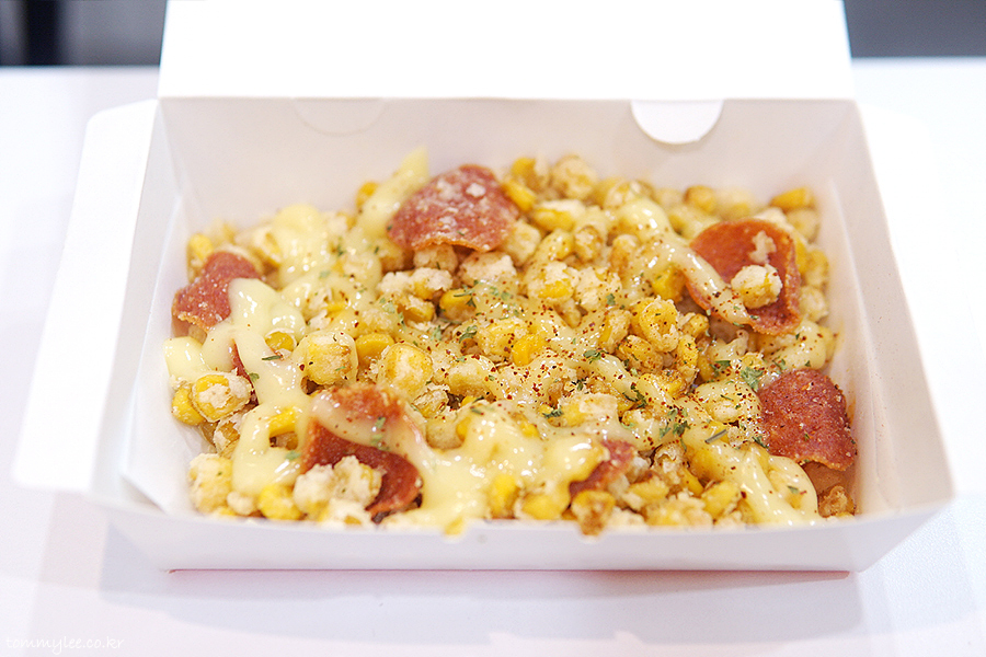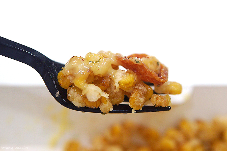 이것은 진짜 단짠의 정석.. 단짠단짠한 크리스피한 튀김옷에 옥수수알은 톡톡 터지고.. 생각보다 더 맛있는 기분.. 옥수수가 진짜 한알한알 따로 떨어져서 포크로 먹기는 조금 불편하긴 하네요.. 스푼 주면 좋을 텐데..