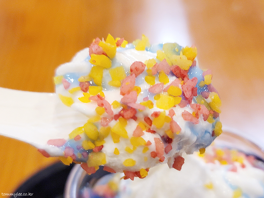 팝핑캔디가 비교적 넉넉한 양이 토핑 되고 소스 양도 뭐 부족하진 않게 나오는 것 같네요..