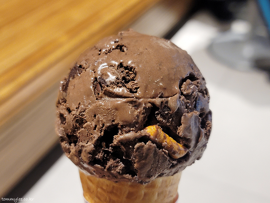 그나저나 이게 얼마만의 다크초코 기사님인지 모르겠어요.. 오랜만에 보니 초코색이 더 진해진듯한 기분이 드네요.. 진한 초코맛의 초콜릿퍼지 아이스의 매력은 여전하군요.. 단단한 프레첼도 굿굿..