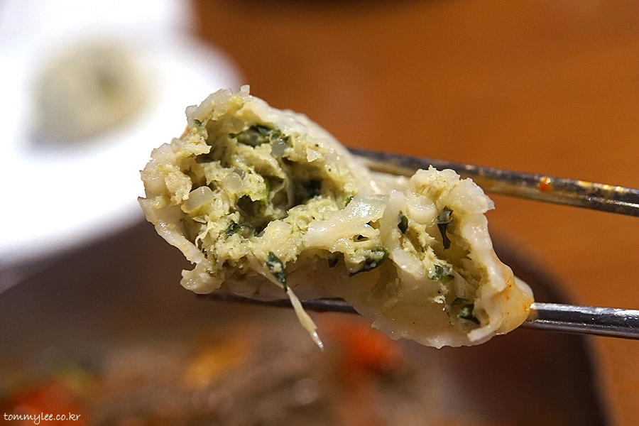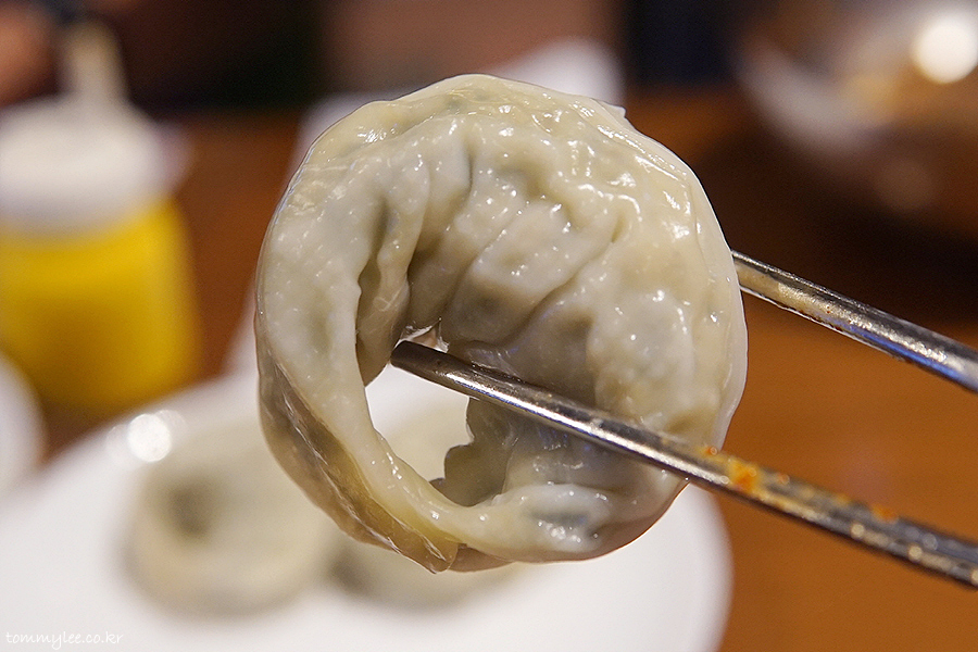 흥남집 만두를 집어 들면 이런 느낌..
